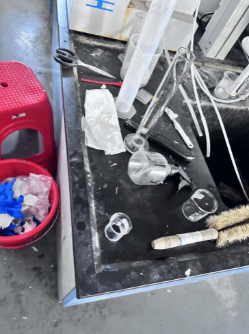 检查过程中,发现公司所在综合实验教学楼各实验室运行良好,而农科东副楼北楼各实验室运行较差。其中,发现卫生不合格实验室2间(农科东副楼北楼B215、农科东副楼北楼B315),设施摆放阻碍逃生通道实验室1间(农科东副楼北楼B217),对发现的各类卫生、安全所涉及的具体问题,检查组均进行了详尽记录与拍照取证,并第一时间与实验室负责人进行了沟通,同时提出具体的整改意见和建议。