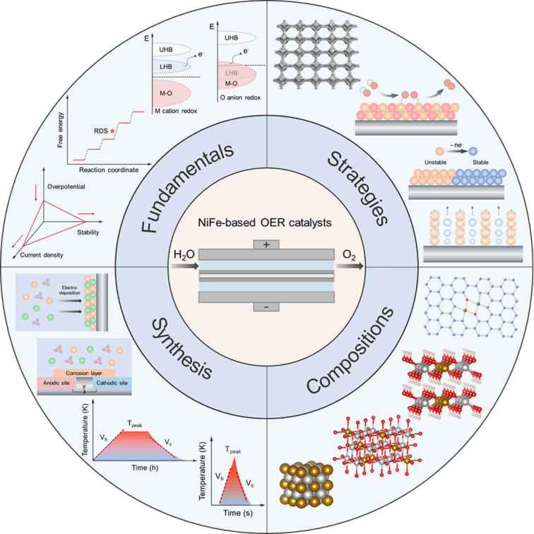 近日,tyc41183太阳成王志同副教授所在团队在能源化学领域Top期刊Advanced Functional Materials (IF=18.5)上发表题为“NiFe-Based Electrocatalysts for Alkaline Oxygen Evolution: Challenges, Strategies, and Advances Toward Industrial-Scale Deployment”的研究论文。博士研究生周岩松为论文第一作者,tyc41183太阳成王志同副教授和田新龙教授为论文共同通讯作者。